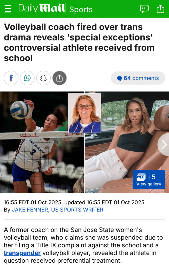 https://www.dailymail.co.uk/sport/othersports/article-15153023/san-jose-state-volleyball-coach-transgender-player-special-exceptions.html